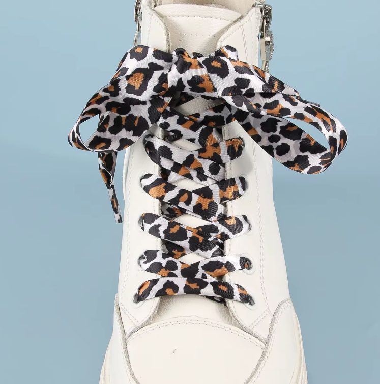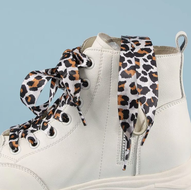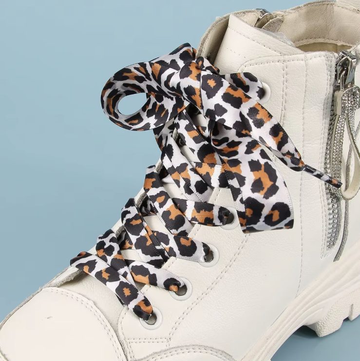 Odolné tkaničky s leopardím vzorem. Oživí tenisky aj kotníkové topánky.
