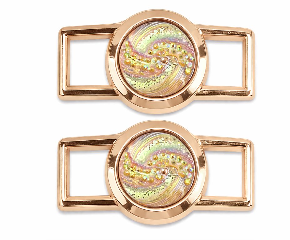 Tieto štýlové kovové spony na šnúrky dodajú vašim topánkam jedinečný vzhľad a originálny detail. Vďaka výraznému dizajnu s farebným vzorom skvele oživia každú obuv a podtrhnú váš osobný štýl.
